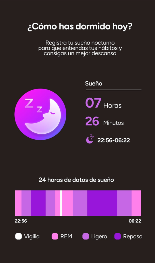 Este reloj te acompaña en cada paso con más de 100 modos deportivos y un seguimiento constante de tu pulso, oxígeno en sangre, sueño, pasos, entre otros. ¡Siempre para acompañarte desde tus entrenamientos al aire libre hasta las actividades del día a día!
