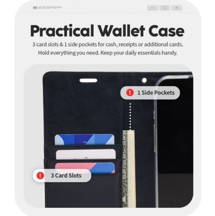 💼 Diseño tipo cartera: incluye 3 ranuras para tarjetas y 1 bolsillo lateral para billetes o recibos.