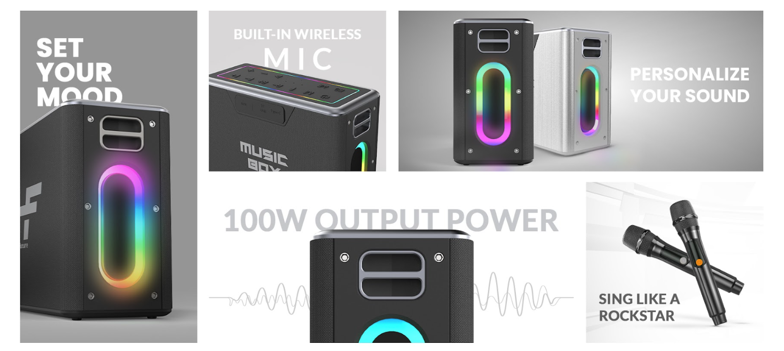 🎤 HiFuture MusicBox – Altavoz inalámbrico “Karaoke” de 100W con funciones premium
