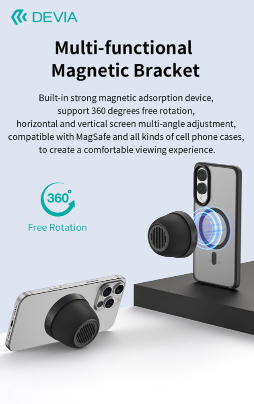 🧲 Soporte magnético multifuncional: Su base magnética 360° permite colocarlo fácilmente en tu móvil, nevera o cualquier superficie metálica, ajustando el ángulo según prefieras.