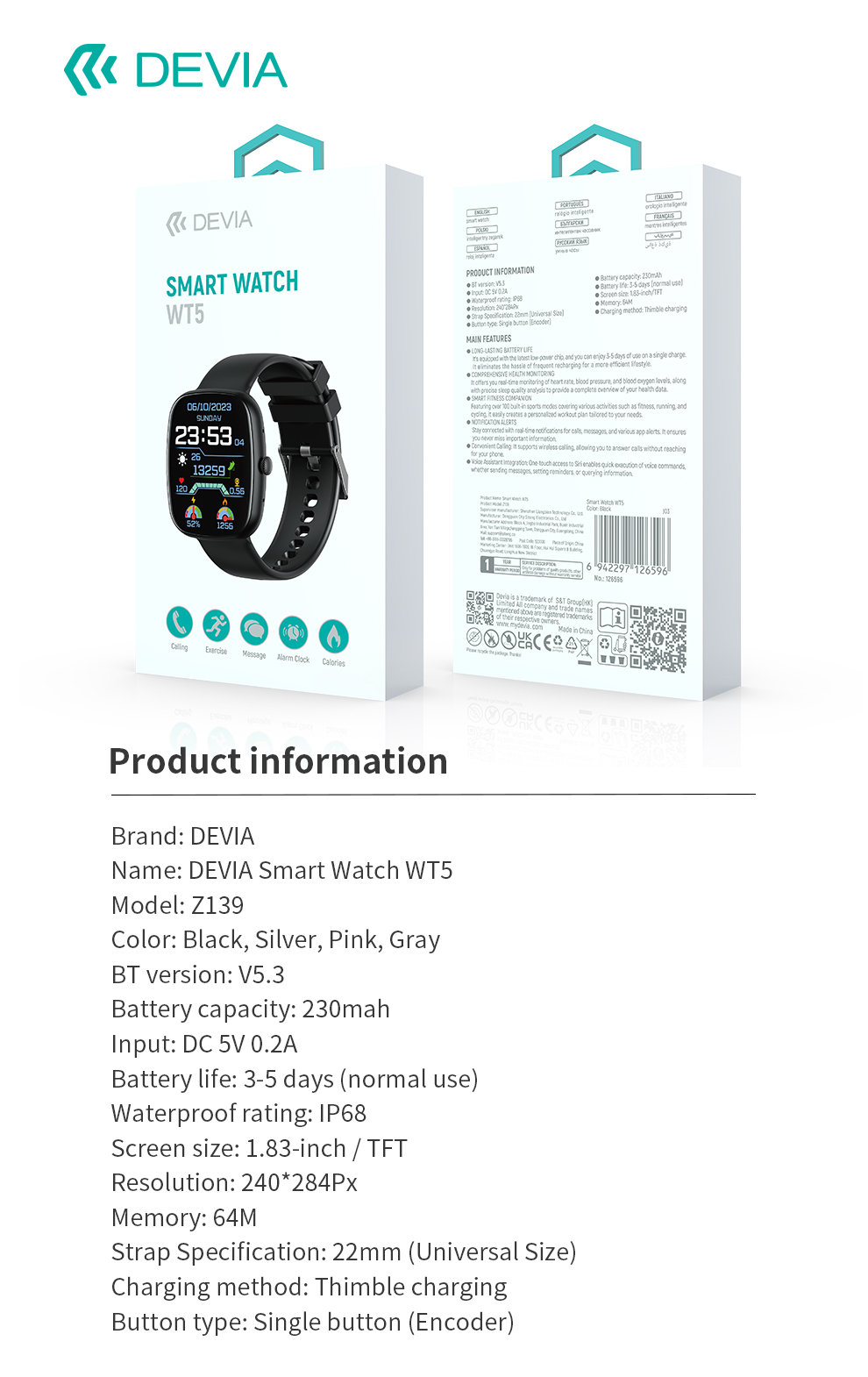 DEVIA SMARTWATCH WT5 ROSA