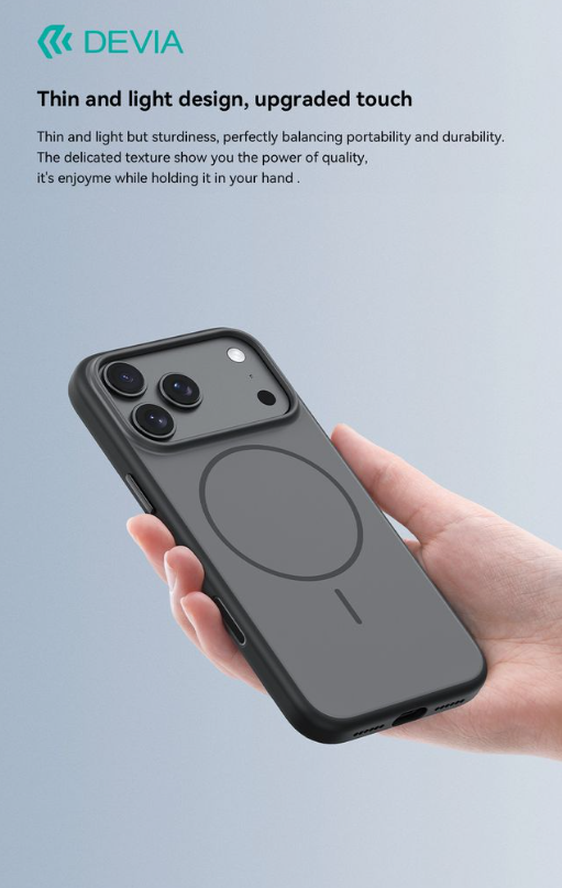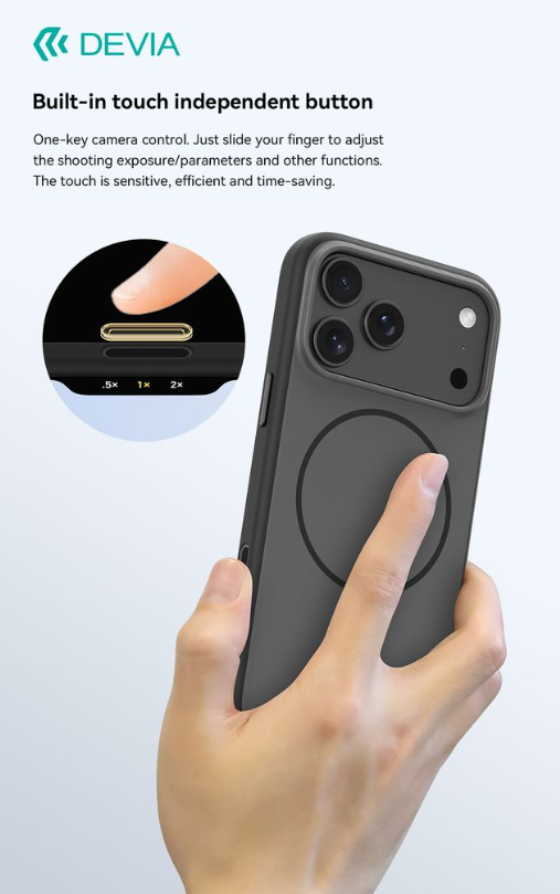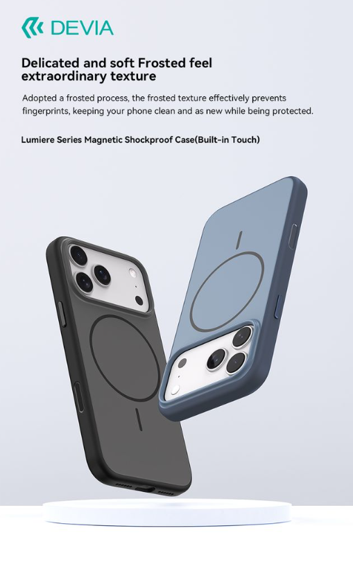 Protege tu iPhone con elegancia y tecnología avanzada gracias a la Devia Lumiere Series, una funda magnética con control táctil integrado que combina estilo, resistencia y funcionalidad en un diseño premium.
